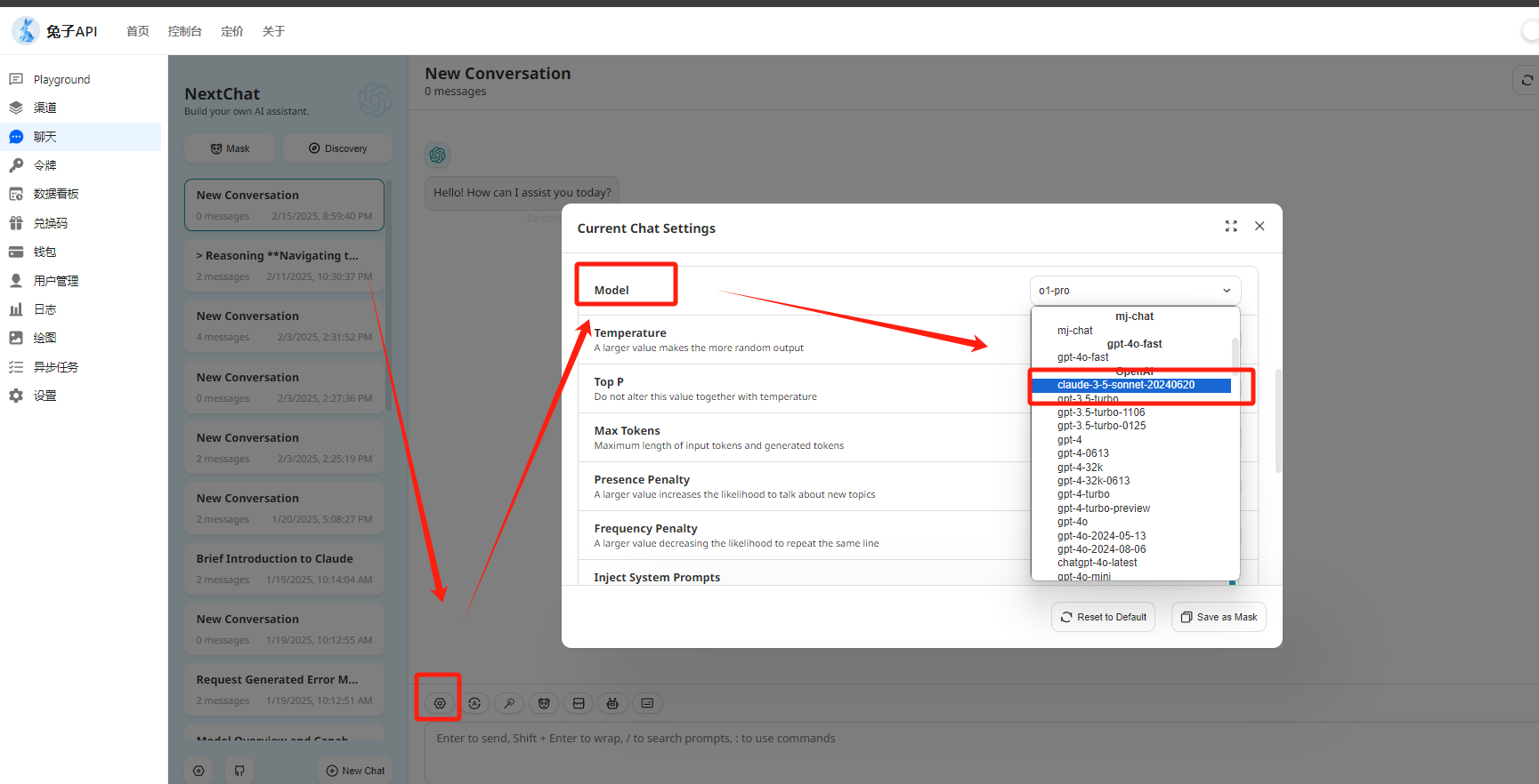5. 新建对话选择自定义的模型claude-3-5-sonnet-20240620@OpenAI即可交流